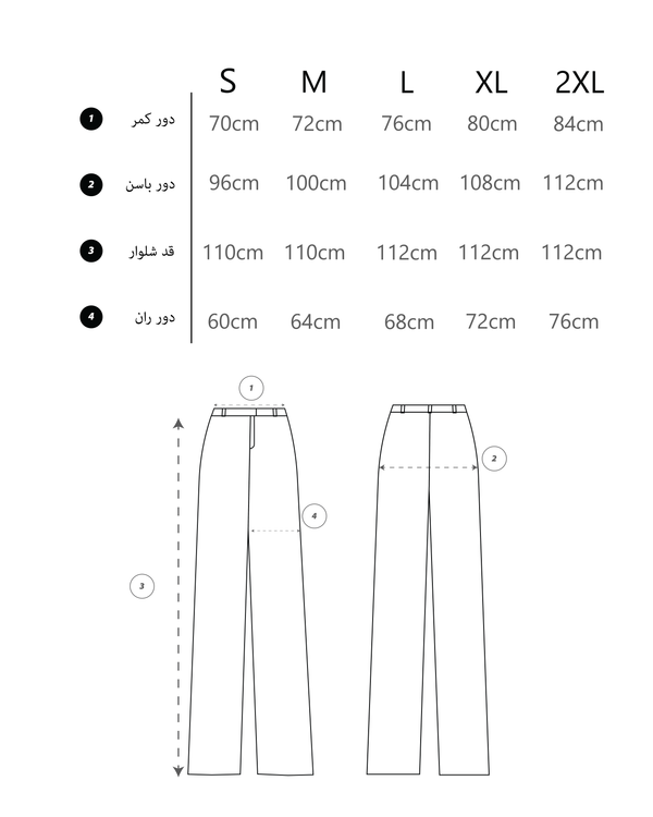 توجه كنيد سايز هاي دور كمر و دور باسن خود را با توجه به جدول سايز بندي به صورت كيپ در نظر بگيريد و سايز خودتون رو انتخاب كنيد