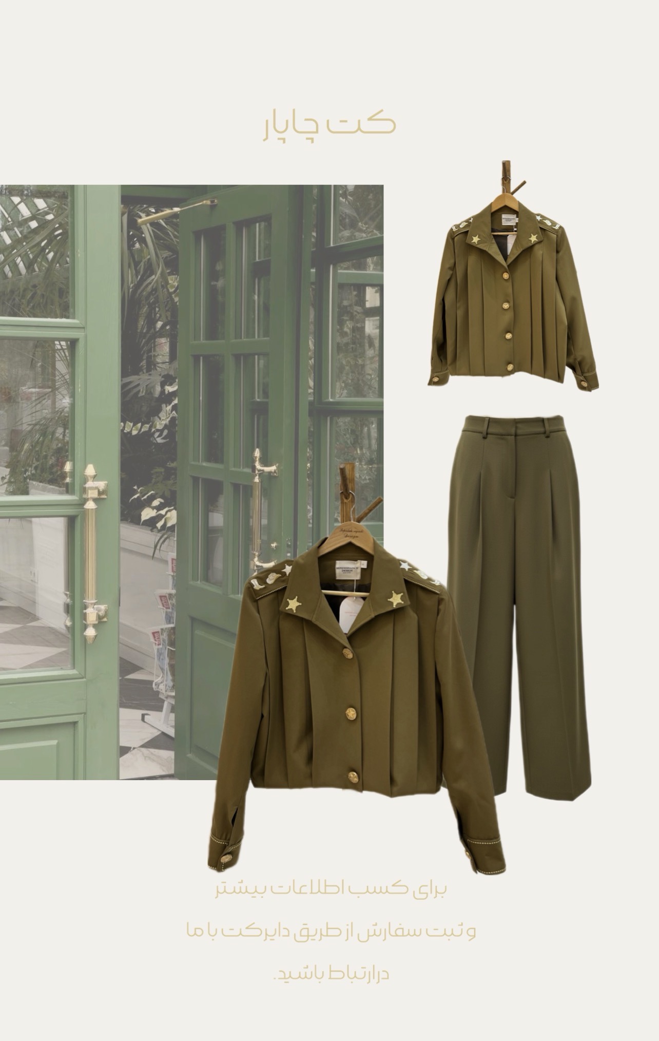 مشخصات اصلیسايزبندي شلوار / S / M / L / XL / XxLقد کت / ۴۸ / ۵۵مشخصات فرعیجنس پارچهکرپاسترداردرنگ بندیتک رنگ
