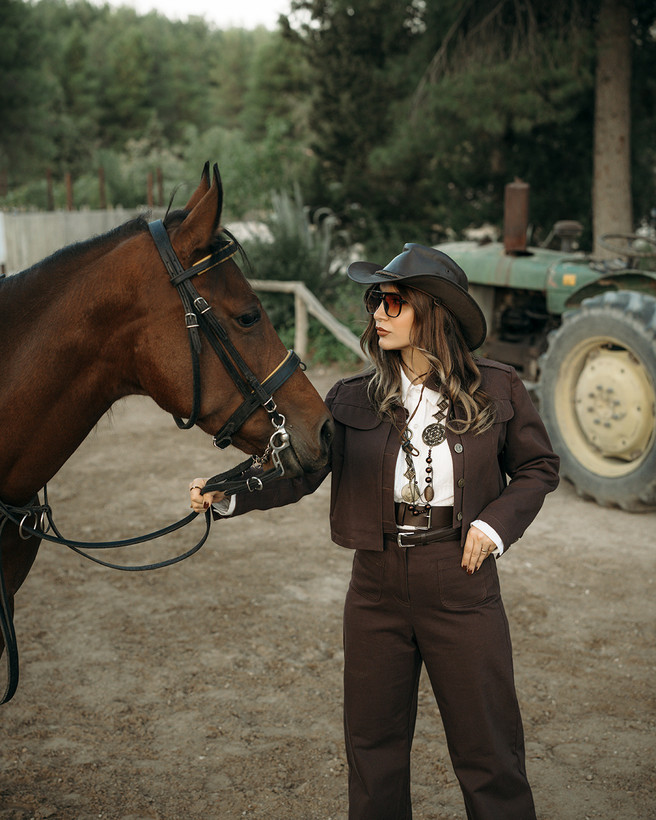 قابل ست با دامن یا شلوار همجنس برای داشتن یک استایل کامل کابوی.